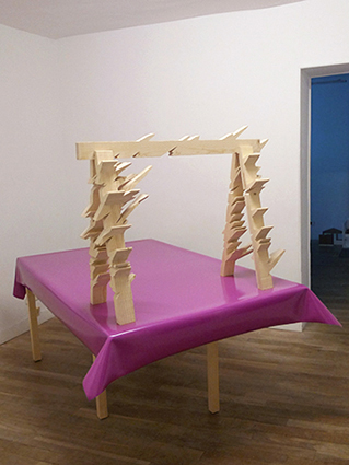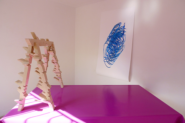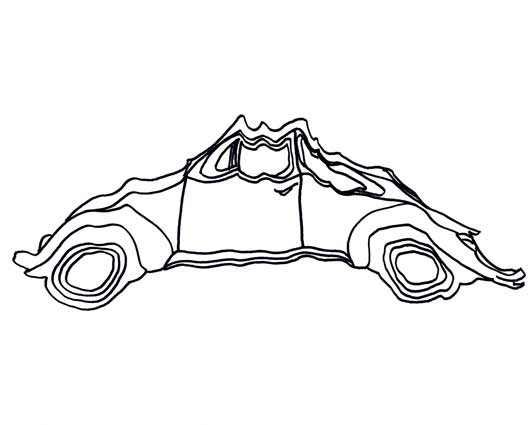 Exposition du 17 janvier au 17 avril 2014 Larve est le titre de ce dessin où l'on identifie, quoique déformée, une Volkswagen de type 1 – dite coccinelle. Bien qu'intitulé Larve, ce dessin représente d'abord un raisonnement et tente de répondre à l'interrogation suivante : si une coccinelle est une Volkswagen de type 1 alors que pourrait être ce coléoptère à l'état larvaire ? Le quiproquo, ici, provient de l'inversion du rapport d'interprétation. L'objet interprété (l'automobile) devient le surnom de son interprétation (la coccinelle). Une coccinelle est une Volkswagen de type 1, par conséquent ce dessin représente une larve. Si l'exposition confie son titre à ce dessin, c'est que cette proposition de larve possède, au moins en partie, la qualité d'annoncer la tonalité de plusieurs pièces récentes réunies pour l'occasion telles que Hachures au Bois de Tréteau ou encore Axonométrie de Rature. Ainsi, cette exposition, au travers de quelques malentendus raisonnés et autres aberrations langagières, propose à voir différentes espèces de représentations. http://romainlaveille.net/