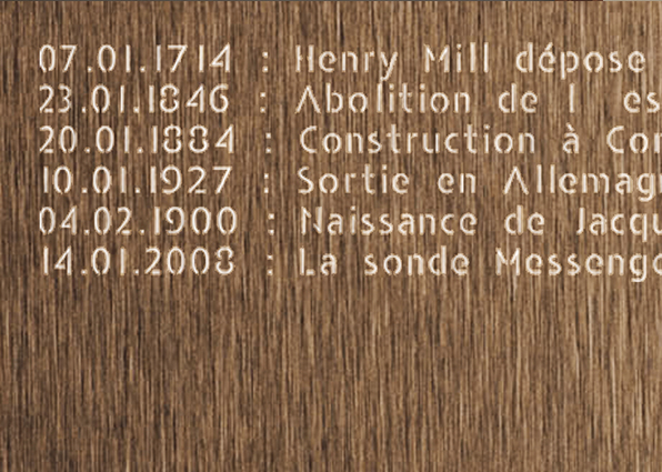 La Belle Histoire de Julien Serve est un projet d’intervention artistique dans le cadre de la construction d’un immeuble d’habitation à Paris. L’installation reprend le principe graphique de 12h00 : Tué par une balle de pelote basque (exposition de Julien Serves à l’atelier martel en 2012). Elle sera constituée d’une série de 2013 événements réels de l’Histoire de l’Humanité gravés dans le verre. Ici l’artiste construit sa version de l’Histoire de l’humanité sur les deux derniers millénaires à raison d’un événement par année. La « ligne éditoriale » sera une vision résolument optimiste et réjouissante de l’Humanité. Si l’Histoire est le fruit de choix dans les faits d’actualités ainsi que l’articulation de ces choix afin de dégager une logique globale, une lecture cohérente du déroulement des événements, la constitution d’une autre histoire radicalement différente, une histoire sous-tendue par un souci global de célébration joyeuse de l’homme est possible..