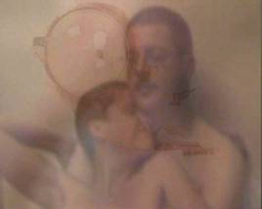 LA VIDEO : Vidéo, parlant du désir, et de son abîme.Une lumière rouge en rappelant l'urgence, est là, souvent présente. Un couple qui s'adonne à l'amour, mais dont on ne voit que les têtes. La femme se baignant de blanc,Des mots se superposant, parlant de ce désir, (extrait de "L'ange dans le couloir" de Jacques Roman) Le rouge envahissant l'image, laissant entrevoir une main...ou deux….Valse érotique parlant de l'intime, du lieu de l'intime. LES DESSINS :Transferts hésitants, personnages labiles, mots à peine lisible, un intime déposé sur le papier. LES GRAVURES : Gravures sur bois, tirées sur papier, dont les matrices sont prises ensuite dans des blocs de cire troublant ainsi l'image, jeu de transparence et d'opacité, matière devenant elle-même sensuelle