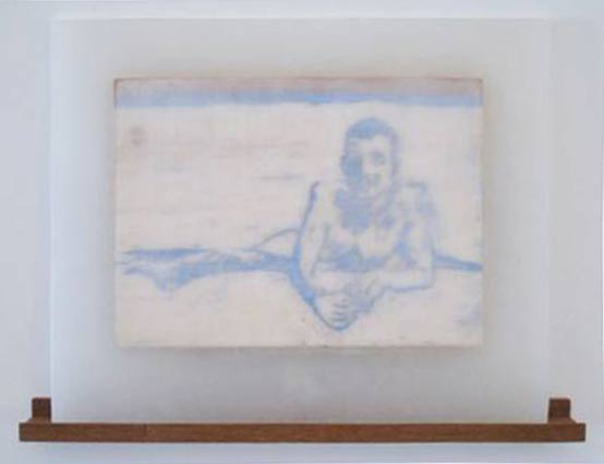 LA VIDEO : Vidéo, parlant du désir, et de son abîme….Valse érotique parlant de l'intime, du lieu de l'intime /////// LES GRAVURES : Gravures sur bois, tirées sur papier, dont les matrices sont prises ensuite dans des blocs de cire /////// LES DESSINS :Transferts hésitants, personnages labiles, mots à peine lisible, un intime déposé sur le papier.