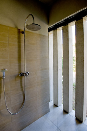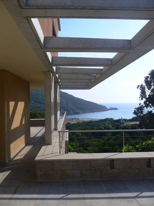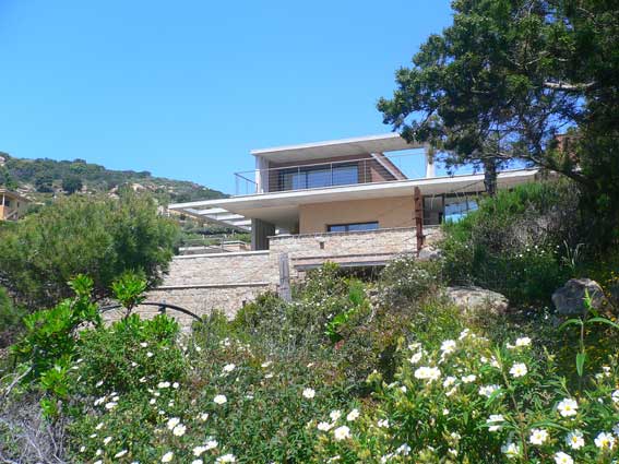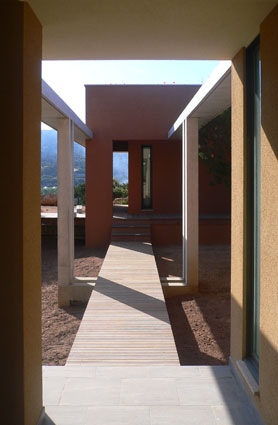 La composition fragmentée permet de conserver la strate arbustive et de limiter fortement l’impact visuel de la construction.Plusieurs blocs constituent ainsi la villa. Leur géométrie est franche, leur texture terreuse : ils semblent taillés dans la matière même du sol. Leurs toits jardins permettent le développement d’une végétation extensive. Positionnés à des altimétries différentes, ils sont reliés par une promenade architecturale offrant de fantastiques cadrages sur le paysage. Procédés constructifs limitant l’empreinte écologique du bâtiment. Récupération des eaux pluviales. Maîtrise du climat intérieur par des procédés passifs ou peu consommateurs d’énergie.