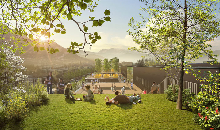 Création d’un pôle d’innovation sur l’énergie et les matériaux pour l’énergie. Projet regroupant l’École d’ingénieurs Grenoble INP -ENSE3 (Énergie, Eau et Environnement), les formations licence et master de l’université Joseph-Fourier, trois laboratoires (G2ELab, SIMAP et le LEPMI), des plateformes de recherche (CMTC, PREDIS et plateforme Nanosécurité), et un espace de restauration pour les personnels et les étudiants (1 450 étudiants et 750 salariés). Le bâtiment a pour principe une implantation des fonctions ressources (médiathèque, CROUS, restaurant, amphithéâtre des thèses, local démonstrateur, salle du conseil,...) le long de la rue des Martyrs. Celles-ci s’organisent autour de l’agora, véritable coeur de GreEn-ER, sur trois niveaux qui irrigue le reste du bâtiment de ses différents flux de circulations horizontaux ou verticaux.