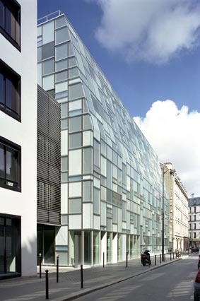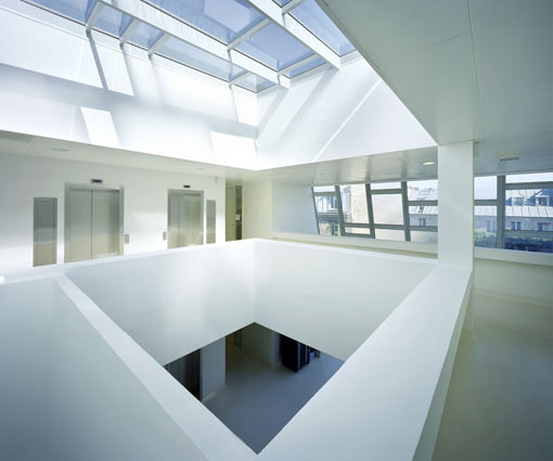 L’Institut de la Vision intègre le site très urbain du CHNO des Quinze-Vingts, afin de favoriser le continuum recherche fondamentale-recherche clinique-industrie. Il s’inscrit dans un tissu faubourien, à l’hétérogénéité stimulante mais à l’identité fragile. Le profil du projet exprime littéralement les contraintes réglementaires. La façade est un mur rideau de verres texturés composé à la manière d’un spectaculaire vitrail blanc. La perception de cette enveloppe subtile change constamment en fonction des points de vue et de la luminosité. Elle valorise les sensations les plus fines et les plus émouvantes associées à la vision humaine.