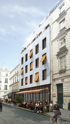Construire dans Paris implique de se positionner par rapport au déjà-là.Pour nous, il s’agit de continuer la ville, ce qui suppose d’expliciter clairement les règles et le cadre dans lequel nous entendons explorer et créer. Ce projet est une prise de position, autant qu’un jeu, sur les questions essentielles de la matérialité de la façade, de la fenêtre, de l’échelle et des proportions.