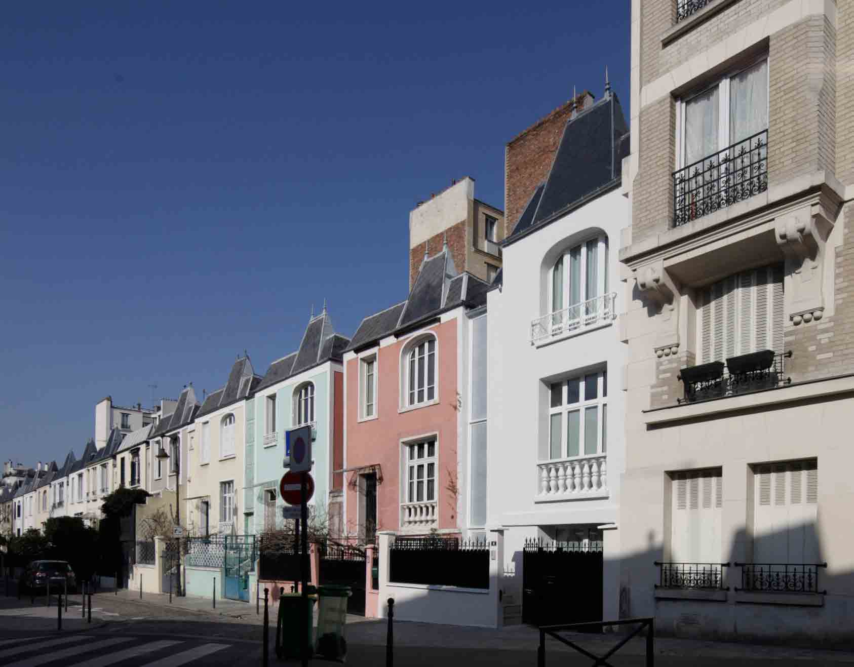 Les 44 maisons accolées de la rue Dieulafoy, dans le quartier de la Maison Blanche (13ème Arrt), ont été construites en 1921 par l’architecte Henry Trésal. Elles illustrent un cas assez rare pour l’époque, d’une promotion immobilière privée d’habitat intermédiaire à destination de la classe moyenne. Au cours du XXème siècle, la plupart des pavillons ont fait l’objet de modifications qui ont contribué à les individualiser. Le projet de rénovation consiste à restituer les caractéristiques morphologiques initiales de la façade, tout en insufflant un esprit contemporain radical. Des pans de verre sérigraphié blanc, faisant écho à la matière et à la couleur du mur maçonné originel, laissent désormais la lumière pénétrer généreusement l’intérieur. Celui-ci est totalement restructuré suivant un parcours en spirale qui lie les trois niveaux, et dont une bibliothèque de 10 000 ouvrages constitue le fil d’Ariane.